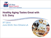 Los formuladores pueden ayudar a los adultos mayores y a los ancianos a optimizar la ingesta proteica en el estilo de vida alimenticio diario por medio del desarrollo y la introducción de opciones más amplias de alimentos y bebidas que contengan proteínas lácteas estadounidenses. La proteína de suero lácteo estadounidense tiene la ventaja de ser una fuente proteica de alta calidad y se la puede agregar a una variedad de productos que se pueden consumir durante el día.