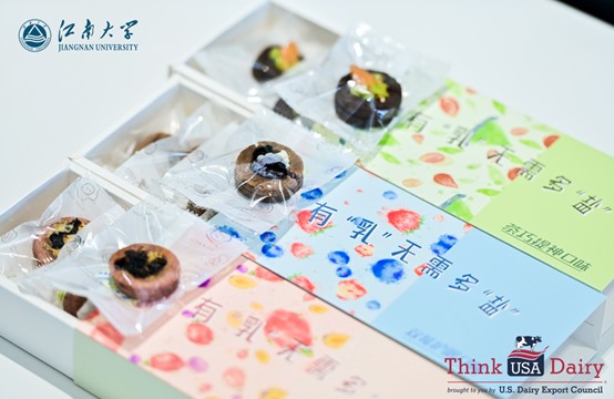 A formal panel of seven seasoned judges invited by USDEC from the local industry, along with Chang Su from USDEC China, and Dr. Lina Zhang from JU, ranked the entries based on taste, innovation, use of the dairy ingredients, and readiness for commercialization. Students also received points for the quality of their presentation and ability to answer the judges' questions.