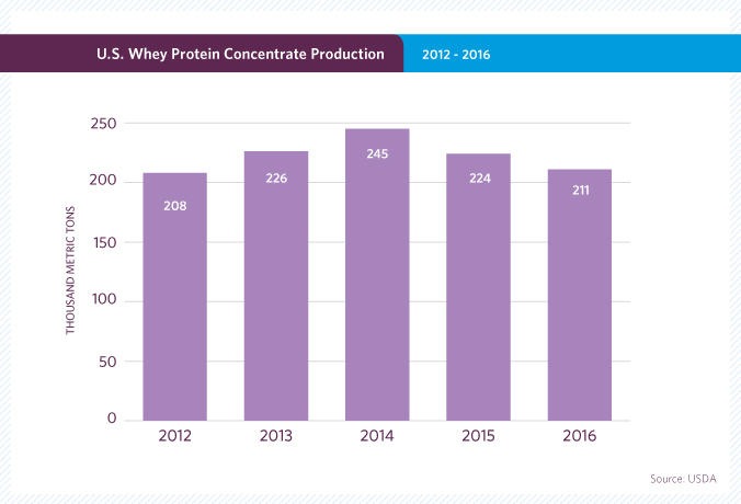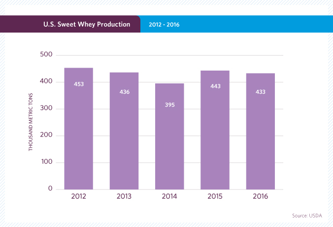 전 세계 유청 제품의 1/4(2014년 기준 740,000 미터톤) 가량이 미국 전역에 위치한 200여 개 유청 공장에서 생산되고 있습니다. 세계 최대의 치즈 산업을 보유하고 있으며 넓은 토지, 활발한 연구개발 투자 등을 바탕으로 미국 유청 업계는 급증하는 글로벌 소비자 수요에 대응하고 있습니다.