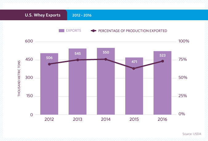 미국은 세계 최대의 단일 유청 제품 수출국입니다. 미국의 수출량은 매번 기록적인 성장을 달성하고 있으며, 생산량의 70% 이상이 해외시장으로 수출됩니다. 미국유제품수출협의회(USDEC)와 미국 유청 업계는 오늘날의 급변하는 비즈니스 환경에 대응하며, 미래에 초점을 두고 전 세계 고객사와의 파트너십 구축을 지향합니다.