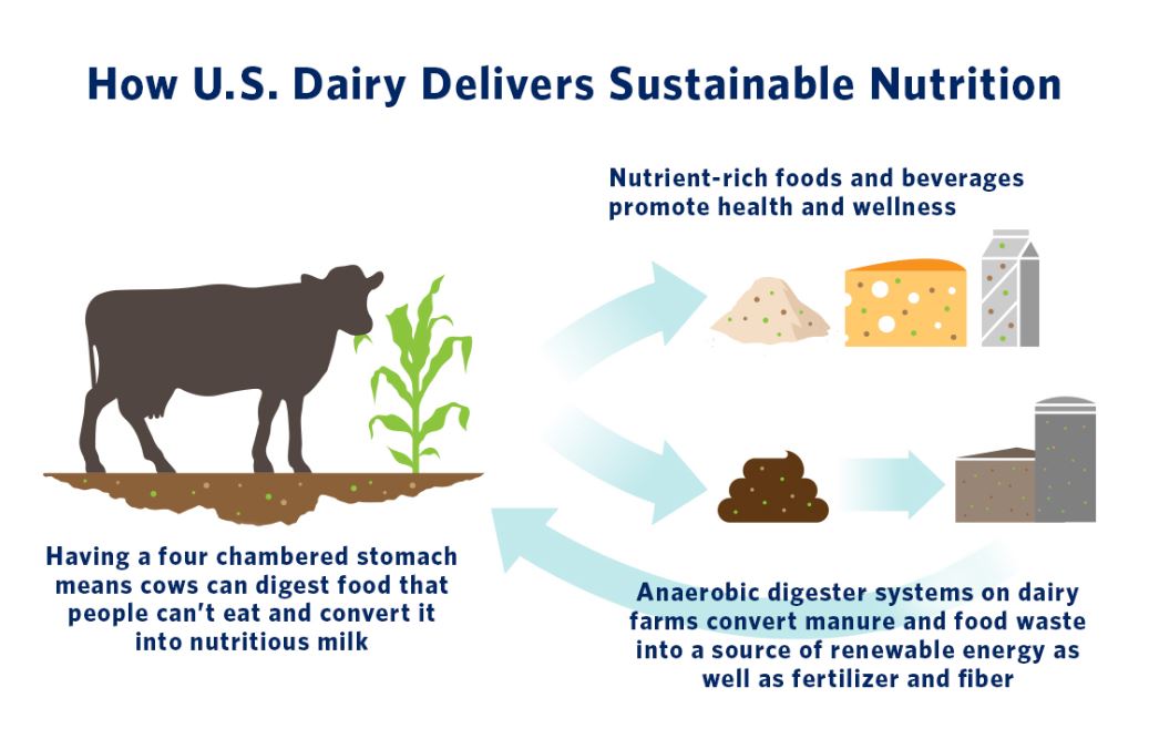 A single U.S. dairy cow produces an average of 144 servings of milk per day (250 ml per serving) that contain key nutrients essential to human health such as calcium, vitamin D, potassium and protein.