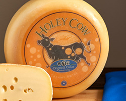 Holey Cow is one of our crowd favorites! It is made from whole cow milk. This semi-soft cheese is filled with small round openings characteristic of a Swiss cheese but with a smooth, creamy texture and a crisp, buttery finish. It's ridiculously cheesy!