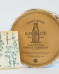 Inspired by the sheer natural beauty of the coastal climate surrounding Point Reyes, Bay Blue is a rustic-style blue cheese reminiscent of Stilton. It is known for its mellow flavor and sweet, salted caramel finish. Made from pasteurized, rBST-free cows' milk with traditional rennet, it is aged on the farm for 90 days. Bay Blue has a fudge-like texture with a beautiful natural rind and a mild blue mold pungency with a sweet, salted caramel finish.