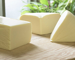 Vella's Monterey Jack is the most rich and delicious Monterey Jack anywhere. Its rich, buttery, creamy texture and taste leaves a clean fresh flavor in your mouth. At room temperature, it's as soft and creamy as a fine Brie, but far more economical. The imprint of the muslin cloth on the back of the wheel shows that it has been rolled and shaped by hand. No machine-made cheese could ever match this level of character and individuality. Vella's High Moisture Monterey Jack is available in both blocks and wheels. Block Jack is firmer so it slices and shreds easily. It is great for everyday use. Wheel Jack is softer and creamier, so it is great for a cheese plate.