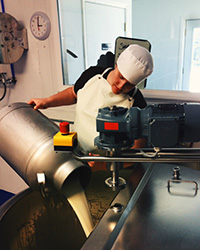 Rachel Kleine started working for Green Dirt Farm in 2012. She learned the art and science of cheesemaking while apprenticing under Sarah Hoffmann, the founder of the company and original cheesemaker, and quickly discovered a passion for the work. With a culinary background, a desire to learn about traditional artisan crafts, and a love of consuming cheese, cheesemaking has been a serendipitous convergence of multiple interests of Rachel's. With only five years of experience in the industry, she is now the Head Cheesemaker at Green Dirt Farm, leading the team responsible for their award-winning lineup of cheeses.