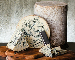 Bayley Hazen Blue is a Jasper Hill Farm original, and is made from their high-quality whole raw milk. It is named for an old military road commissioned by George Washington during the Revolutionary War. Though no major battle ever took place, the road brought Greensboro its first settlers and continues to be used today. Bayley has developed a loyal following because of its fudge-like texture, toasted-nut sweetness, and anise spice character. The paste is dense and creamy, with well-distributed blue veins. The usual peppery character of blue cheese is subdued, giving way to the grassy, nutty flavors in the milk. The texture and flavor make Bayley an ideal choice for any lover of blue cheese, but with a balance of flavors that renders it accessible to those new to the style. Try pairing with a fruity red dessert wine, toasty Imperial Stout, or a hunk of dark chocolate. Bayley is also ideal for crumbling over a juicy burger or adding to a salad with spinach, walnuts, and dried tart cherries.