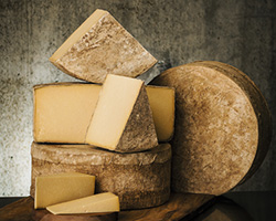Alpha Tolman is named for a philanthropic dairy farmer who built the Greensboro library in 1900. Alpha's grandfather, Enoch, was one of the town's original settlers. His namesake cheese is made in Jasper Hill Farm's satellite creamery, located within the Vermont Food Venture Center in Hardwick, Vermont - a facility designed to incubate value-added projects and enrich our agricultural economy. Alpine cheeses like Appenzeller inspired the recipe for this Jasper Hill Creamery original. Alpha Tolman has a buttery, fruit and nut flavor when young, developing bold meaty, caramelized onion flavors as it matures. The texture is dense and pliant, easily portioned and ideal for melting. The texture, aesthetic, and flavor make Alpha Tolman an ideal choice for fans of Appenzeller (or fondue!). Try pairing with a robust ale, plummy red wine, or onion jam. For a satisfying meal, follow the lead of Swiss/French raclette - melt onto a plate of fingerling potatoes, cured meat and natural sour pickles.