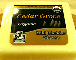 Rich, nutty flavor becomes increasingly sharp with age. Smooth, firm texture becomes more granular and crumbly with age. All varieties of Cheddar at Cedar Grove are made using organic practices, including providing ample grazing space and living space for animals and no use of artificial hormones, antibiotics, or genetically modified organisms (GMOs). All Cedar Grove organic cheese is USDA Organic certified by MOSA and complies with the terms of the US-Canada Equivalency Agreement.