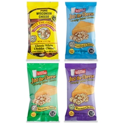 Crunchy Cheese – cheese and crackers without the crackers! What was once a crazy idea of Specialty Cheese owners Paul and Vicki has turned into our delectable Just The Cheese® Crunchy Baked Cheese. For their minis, they start with 100% natural Wisconsin cheese, which is then shredded and baked in their small family-owned plant in central Wisconsin. Every bite of their golden roasted cheese delivers a satisfying crunch that then melts in your mouth. It’s so good you won’t believe it’s Just The Cheese®! Minis come in a variety of flavors to please all palates.